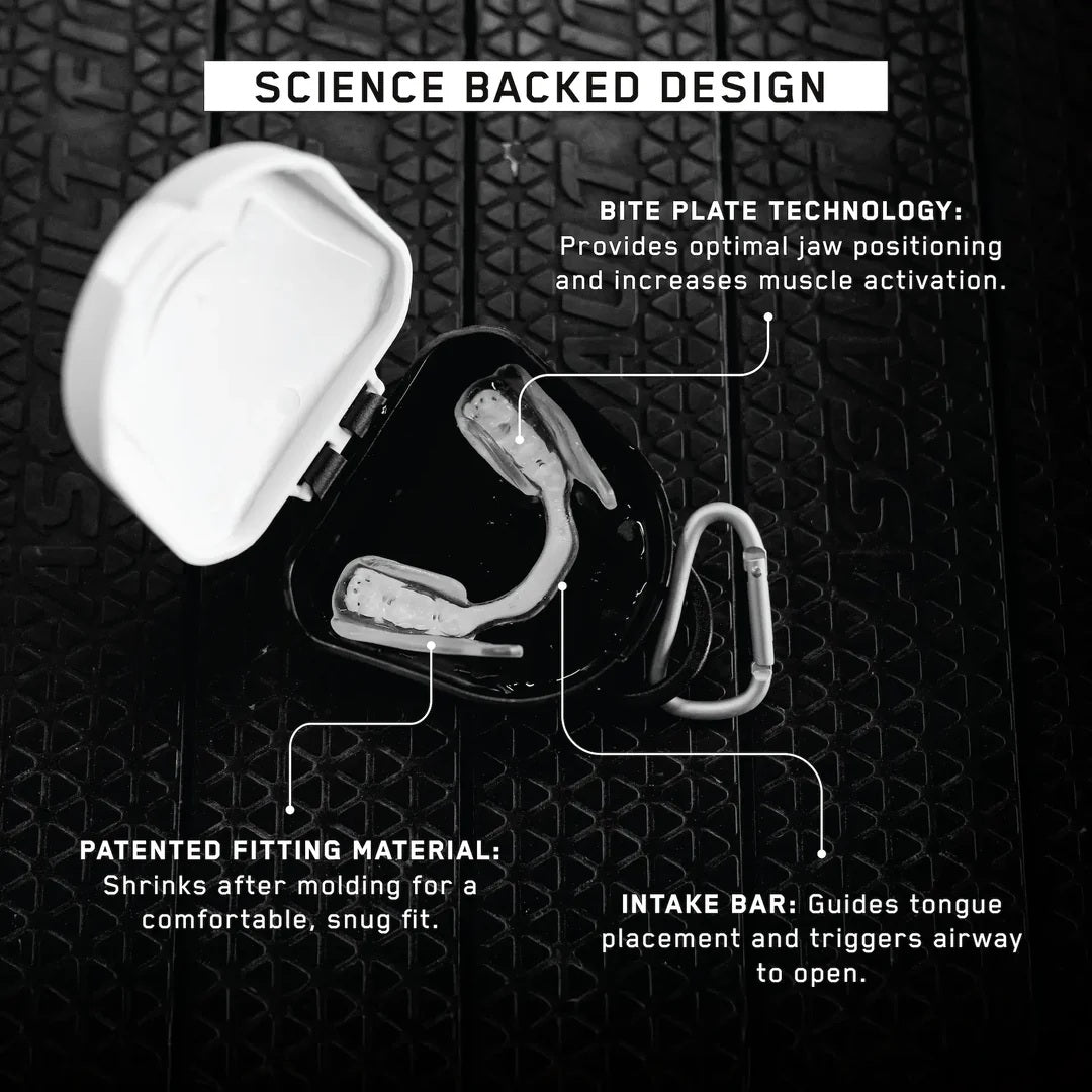 Durch das Zusammenbeißen auf das Mundstück wird die neuromuskuläre Reaktion verbessert und die Muskelaktivierung im ganzen Körper gesteigert. Dies führt zu einer erhöhten Muskelkraft bei hochintensiven Übungen und Bewegungen.